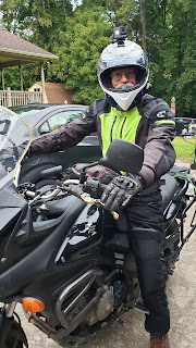 Byron and I also had one afternoon to visit a favorite mountain spot, Hanging Rock State Park. We borrowed a "moty-cicle" for the ride!